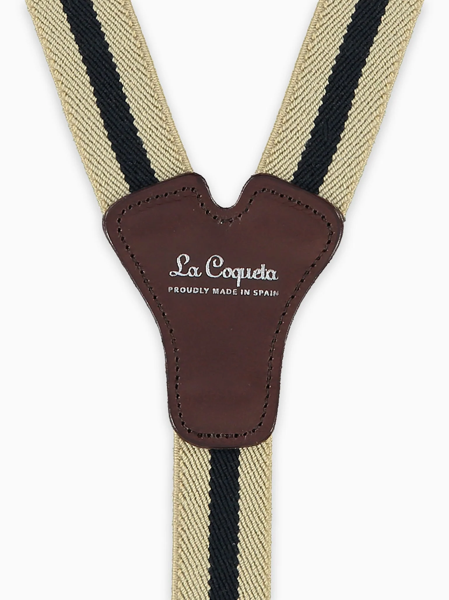Create a sleek and sophisticated finish to your little one's outfit with these stylish Boy Braces, designed with Nappa leather details and woven stretch fabric. Handmade in Spain, they're the ideal choice for both formal and casual looks, finished with a handy clip closure. They are available in a range of versatile colours that perfectly complement any outfit and are school-friendly. This version comes in a charming beige and navy stripe.