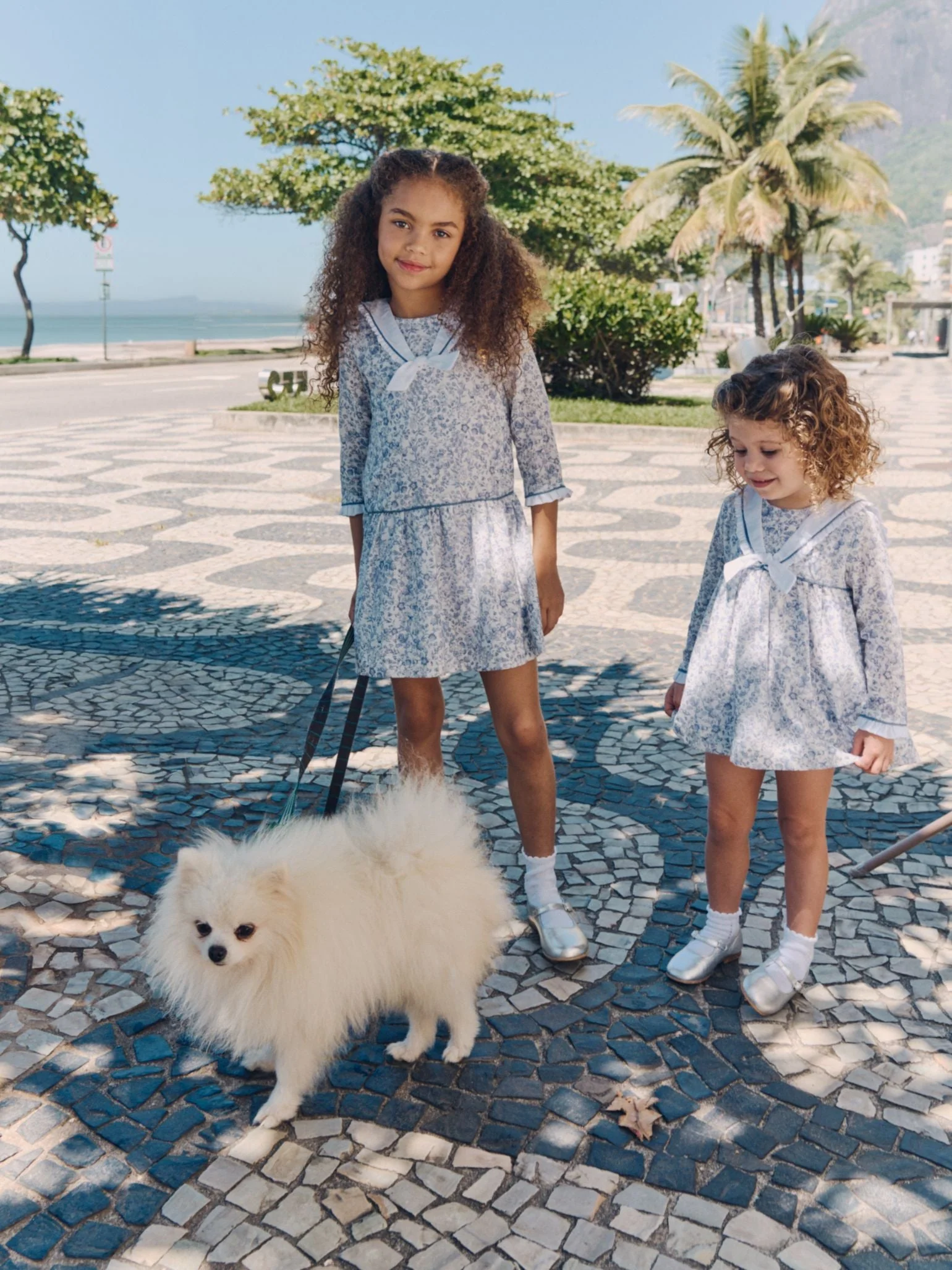 La Coqueta’s Aranda Girl Drop Waist Dress combines playful nautical charm and timeless elegance, serving as the ultimate warm-weather staple. Made from delicately soft pure cotton, this dress is lightweight and gentle on skin, ensuring all-day comfort. Its sailor-inspired drop waist silhouette offers a relaxed yet flattering fit, perfect for playdates and celebrations. Showcasing an illustrative blue floral print on a soft ivory base, it features a classic sailor neckline, three-quarter sleeves, pleated trims, and blue piping for subtle structure. The softly gathered skirt enables freedom of movement, while the back’s mother of pearl button placket balances practicality and sophistication. Handcrafted in La Coqueta’s family-owned ateliers, the Aranda Girl Dress demonstrates Spanish craftsmanship and attention to detail. Its blend of traditional design and modern charm makes it a cherished wardrobe addition or thoughtful gift. Pair with the matching Girl Flat Wide Headband and coordinate with a little sister in the Aranda Baby Girl Set for those adorable, picture-perfect moments.