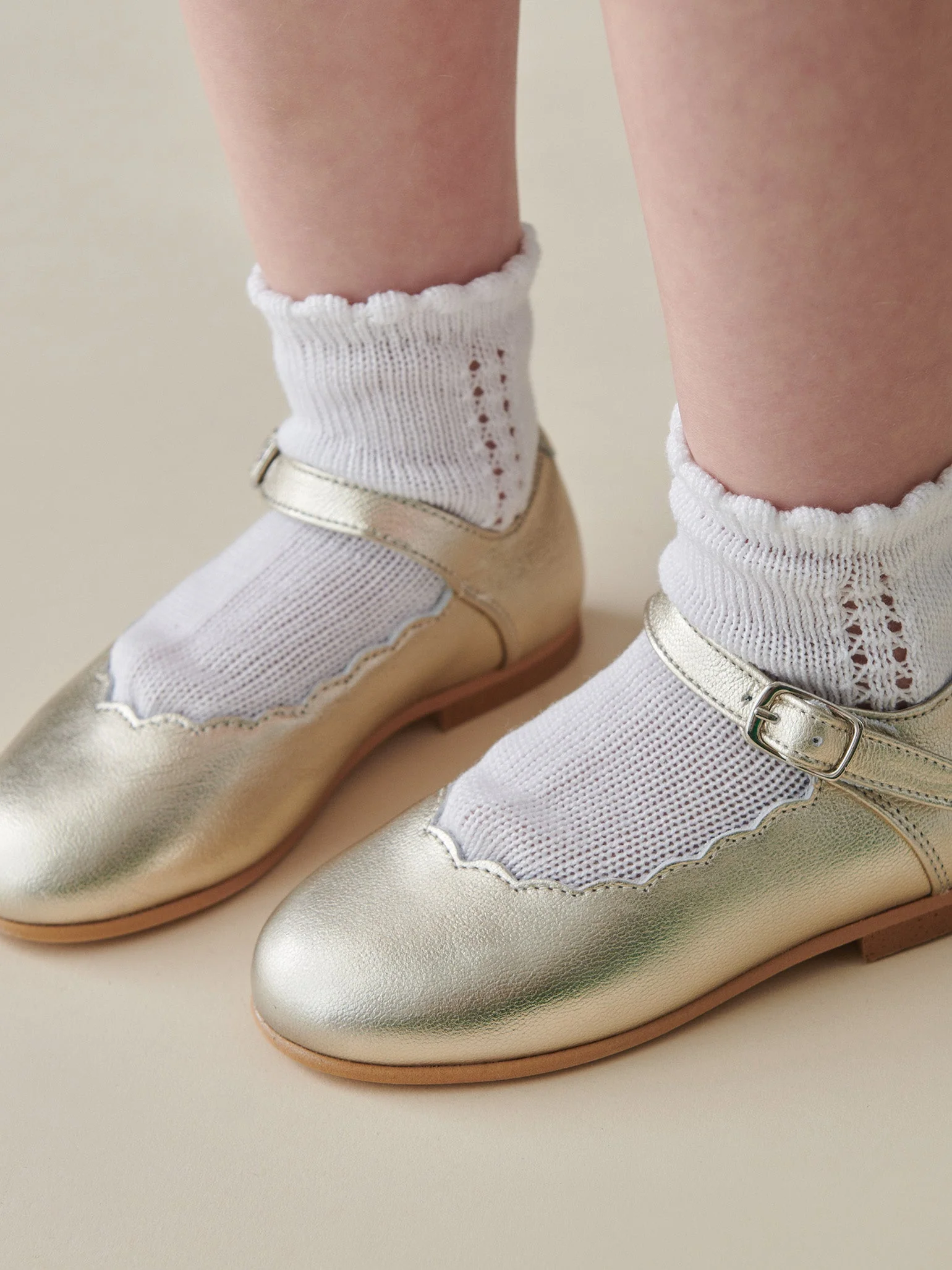 Ideal for styling with La Coqueta’s stretch cotton tights or socks, these Girls Gold Mary Jane Shoes effortlessly pair with your favourite La Coqueta dresses for a refined, coordinated look. Also available in a variety of stunning seasonal shades, explore our full collection of Girls Mary Jane Shoes and scalloped styles to complement any wardrobe.